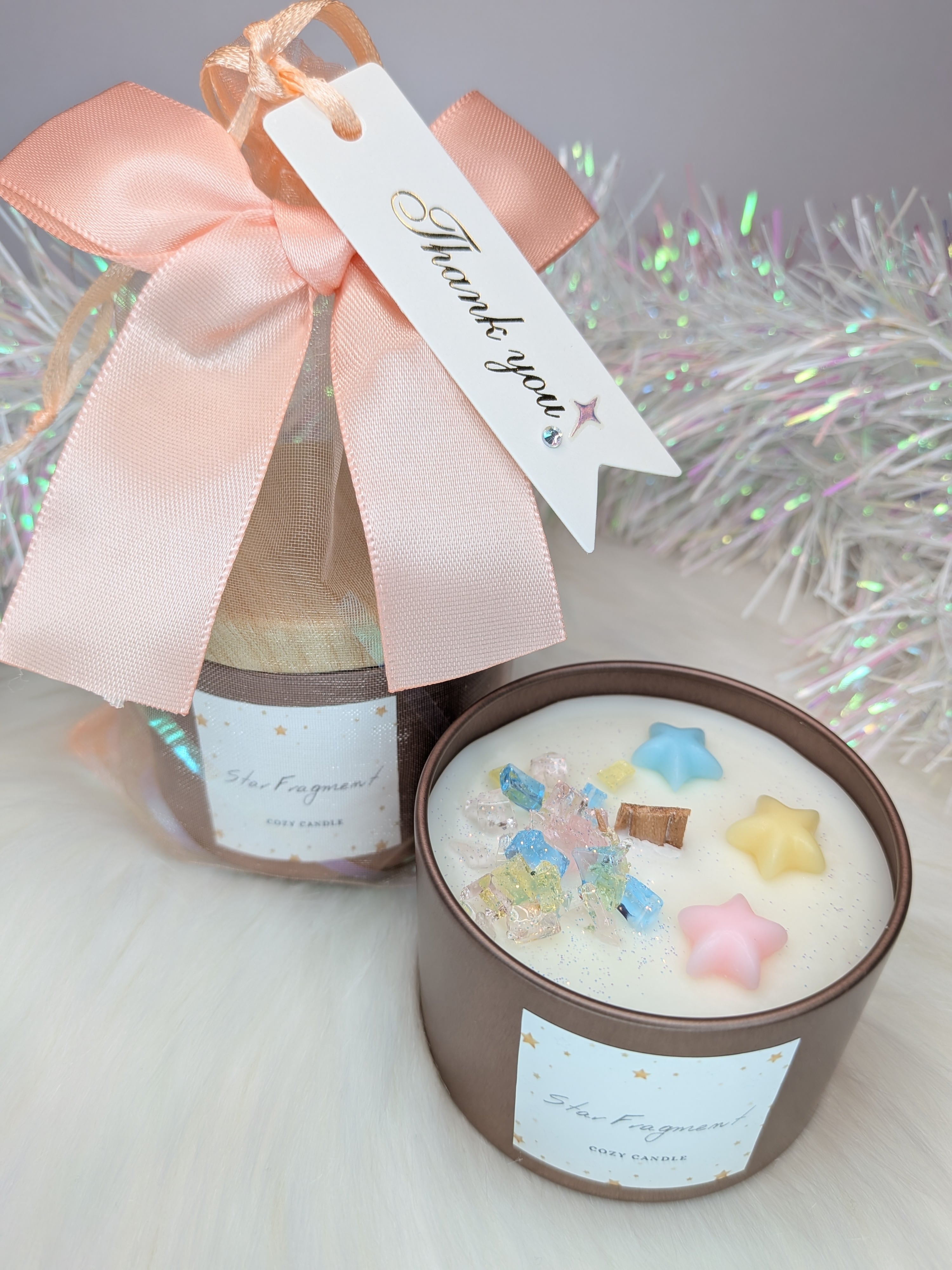 妖精達が集めている星のかけらをイメージしたソイキャンドルです☆。.:*・゜